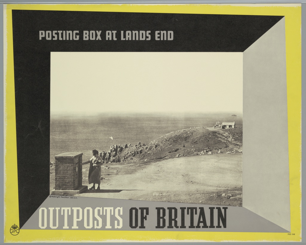 Poster, Posting Box at Land's End, Outposts of Britain; Designed by Edward McKnight Kauffer (American, active England, 1890–1954); Published by British General Post Office; England; lithograph; 50.9 × 63.6 cm (20 1/16 × 25 1/16 in.); Gift of Mrs. E. McKnight Kauffer; 1963-39-88