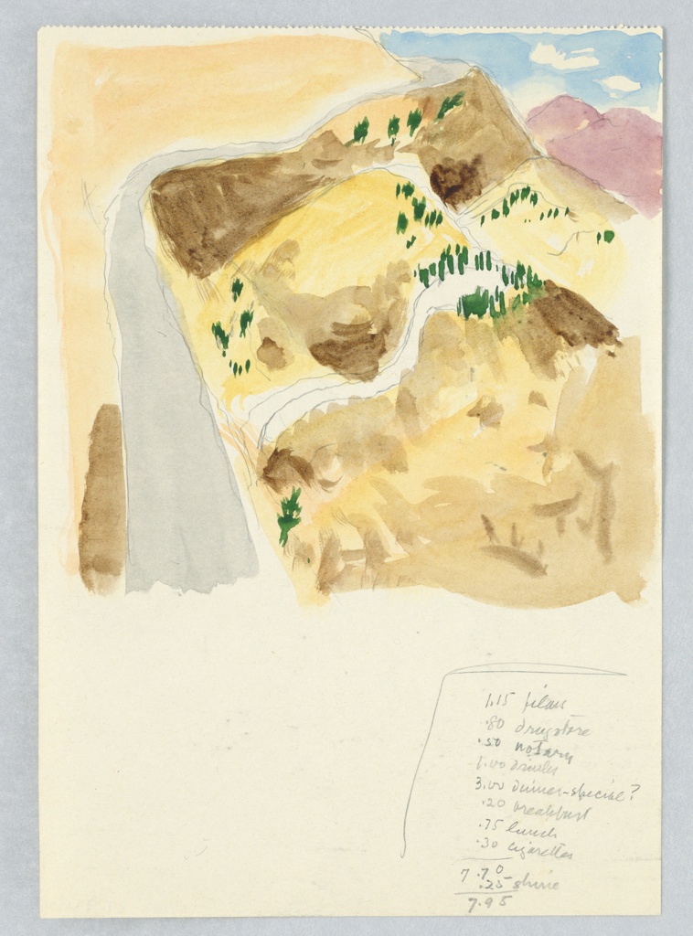 Drawing, Study of a Hilly Desert Landscape; Designed by Edward McKnight Kauffer (American, active England, 1890–1954); USA; graphite, brush and watercolor on paper; 21.2 × 14.8 cm (8 3/8 × 5 13/16 in.); Gift of Mrs. E. McKnight Kauffer; 1963-39-935