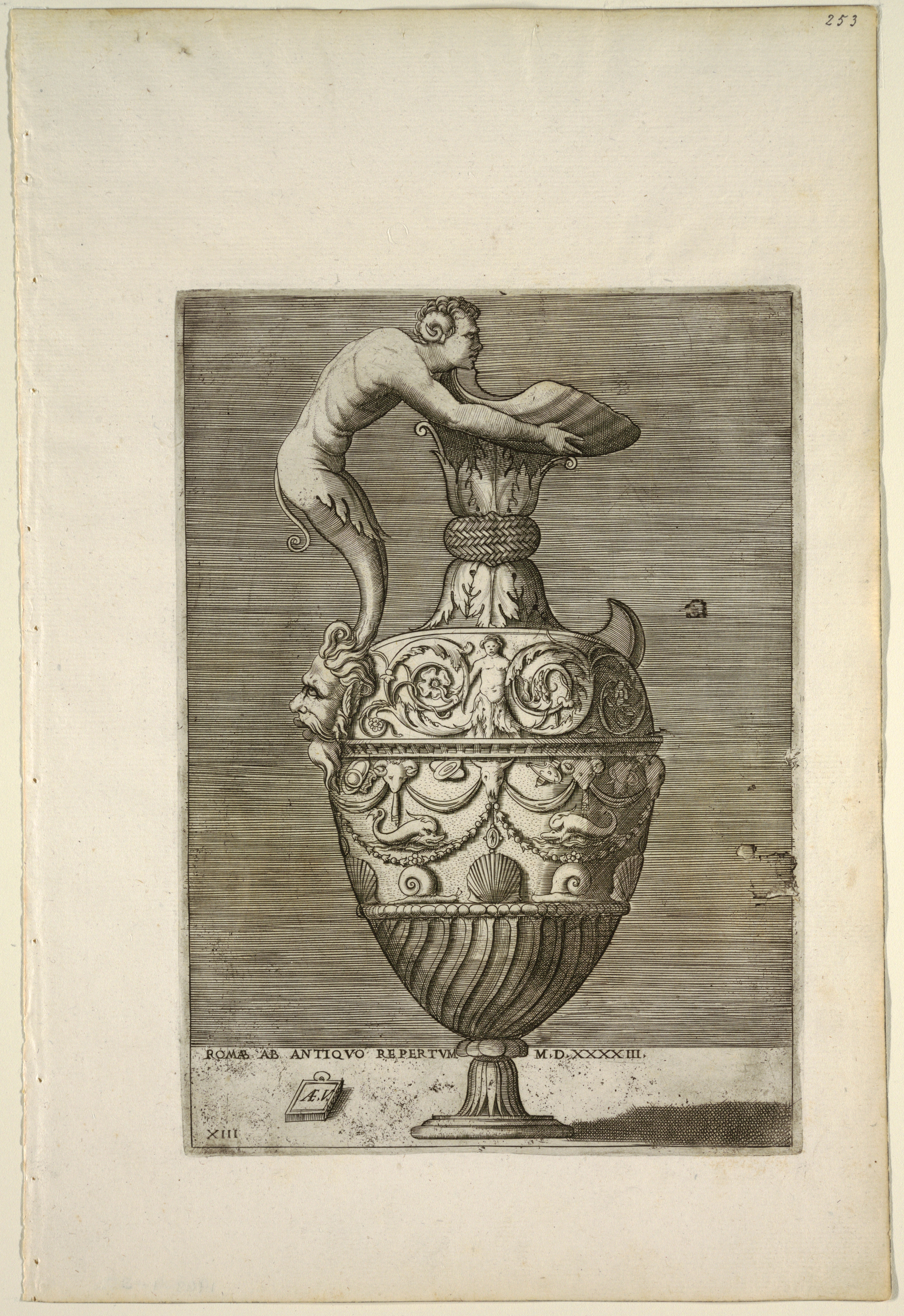 Print, Ewer with a Satyr Holding a Large Conch (Vico)