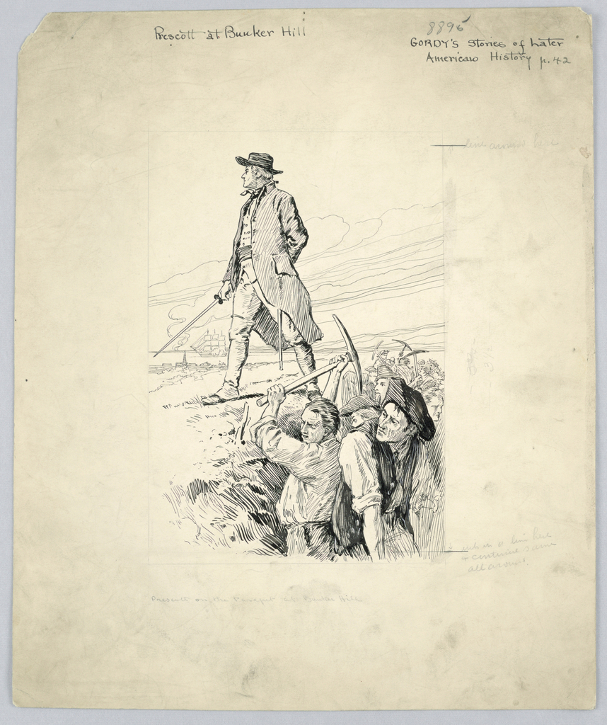 Drawing, "Prescott at Bunker Hill"; Published by Charles Scribner's Sons; pen and black ink on illustration board; 37 × 30.5 cm (14 9/16 × 12 in.); 1963-91-12
