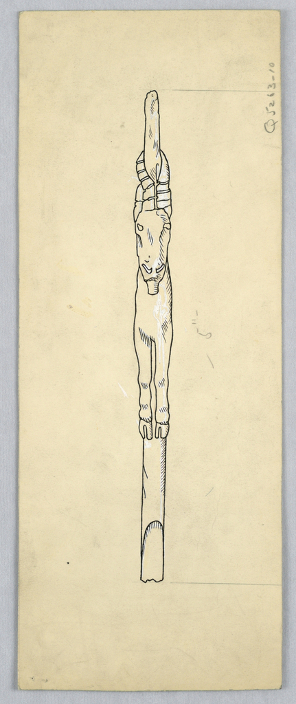Drawing, A carved spear thrower; Published by Charles Scribner's Sons; pen and black ink, brush and white gouache on illustration board; 28.4 × 11 cm (11 3/16 × 4 5/16 in.); 1963-91-29