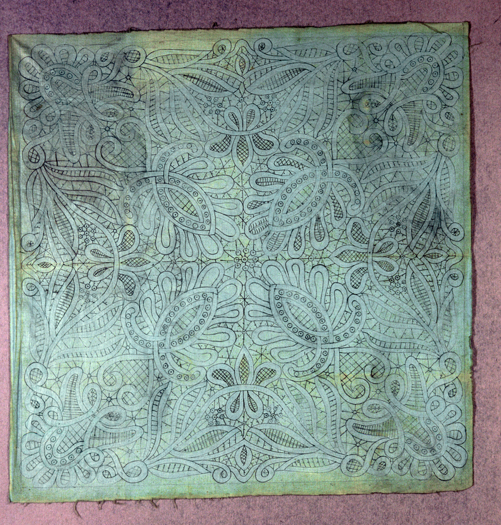 This is a Lace pattern. It is dated early 20th century and we acquired it in 1964. Its medium is glazed cotton and its technique is pattern for pre-made tape lace. It is a part of the Textiles department.