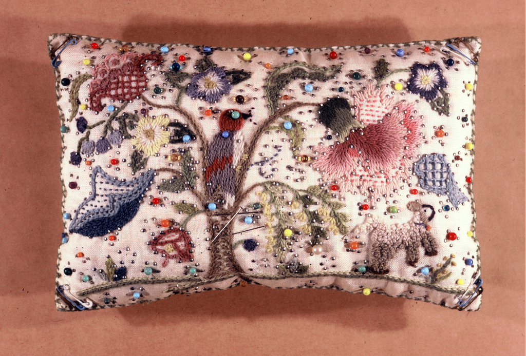 Pin Cushion (Denmark); linen, wool; H x W: 25.5 x 15 cm (10 1/16 x 5 7/8 in.); Gift of Elizabeth Gordon; 1964-35-11