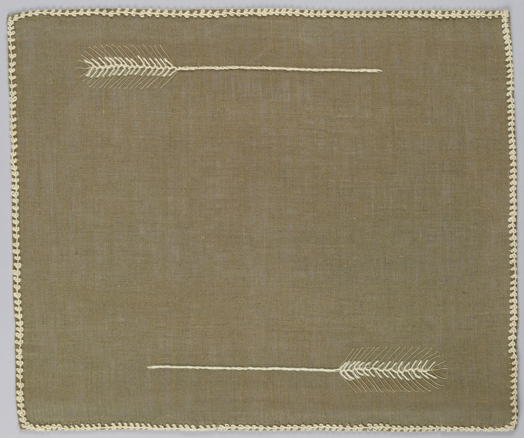 Place Mat And Napkin (USA); Designed by Mariska Karasz ((American, born Hungary, 1898–1960)); cotton and linen on linen ground; H x W (mat): 42.5 x 35.5 cm (16 3/4 x 14 in.) H x W (napkin): 37 x 37 cm (14 9/16 x 14 9/16 in.); Gift of Elizabeth Gordon; 1964-35-16-a/b