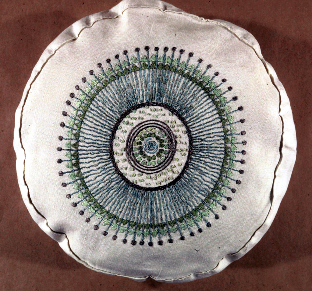 Pillow Cover, Dillkrona; Designed by Eva Kohlmark (Swedish, b. 1924); Sweden; linen; Diam.: 25.5 cm (10 1/16 in.); Gift of Elizabeth Gordon; 1964-35-23