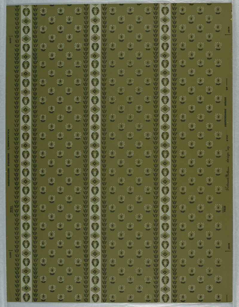 Sidewall, Abercrombie House; Manufactured by Scalamandré; USA; screen printed; 100 x 46 cm (39 3/8 x 18 1/8 in.); Gift of Scalamandre Wallpapers, Inc.; 1964-47-3-a,b