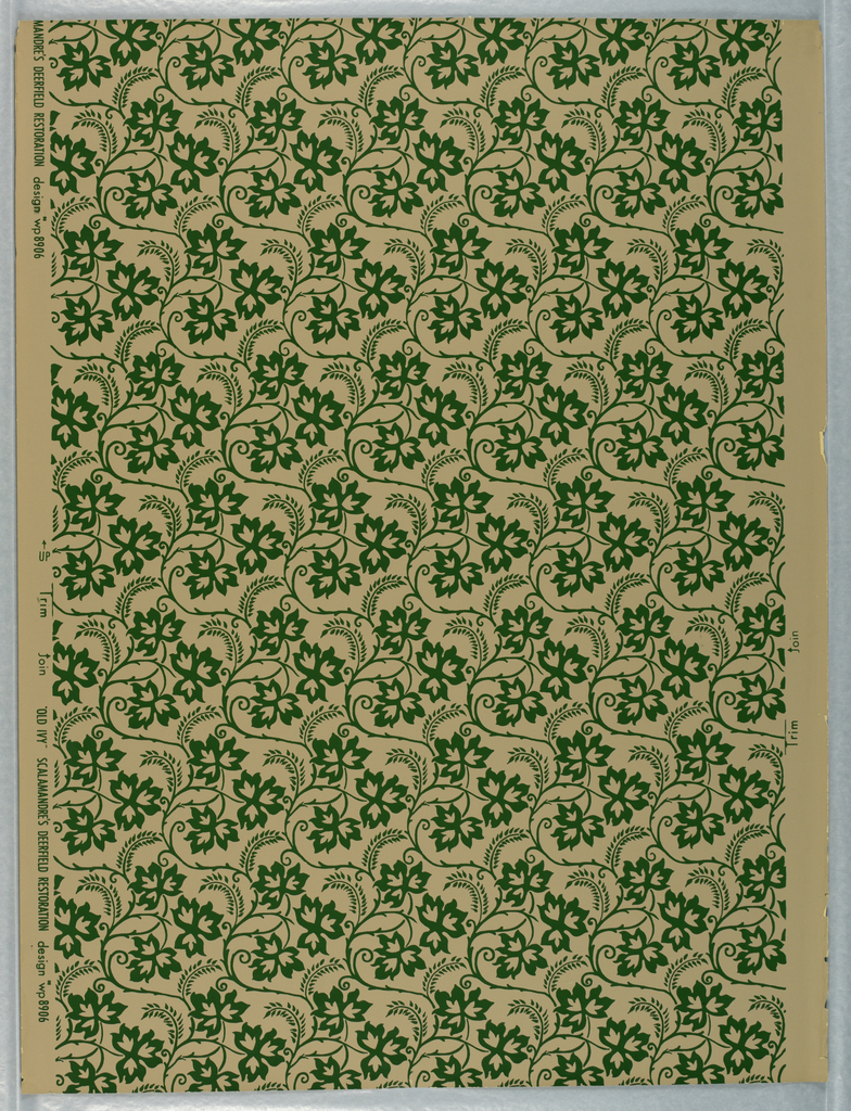 Sidewall, Old Ivy; Manufactured by Scalamandré; USA; screen printed; 100 x 76 cm (39 3/8 x 29 15/16 in.); Gift of Scalamandre Wallpapers, Inc.; 1964-47-6-a,b