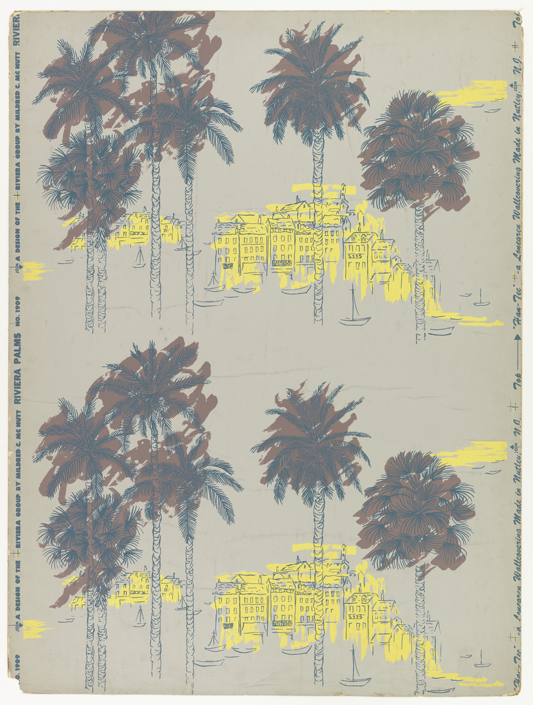 Sidewall, Riviera Palms; Designed by Mildred C. McNutt; USA; screen-printed on paper; 102 x 76 cm (40 3/16 x 29 15/16 in.); Gift of Mildred C. McNutt; 1965-14-7