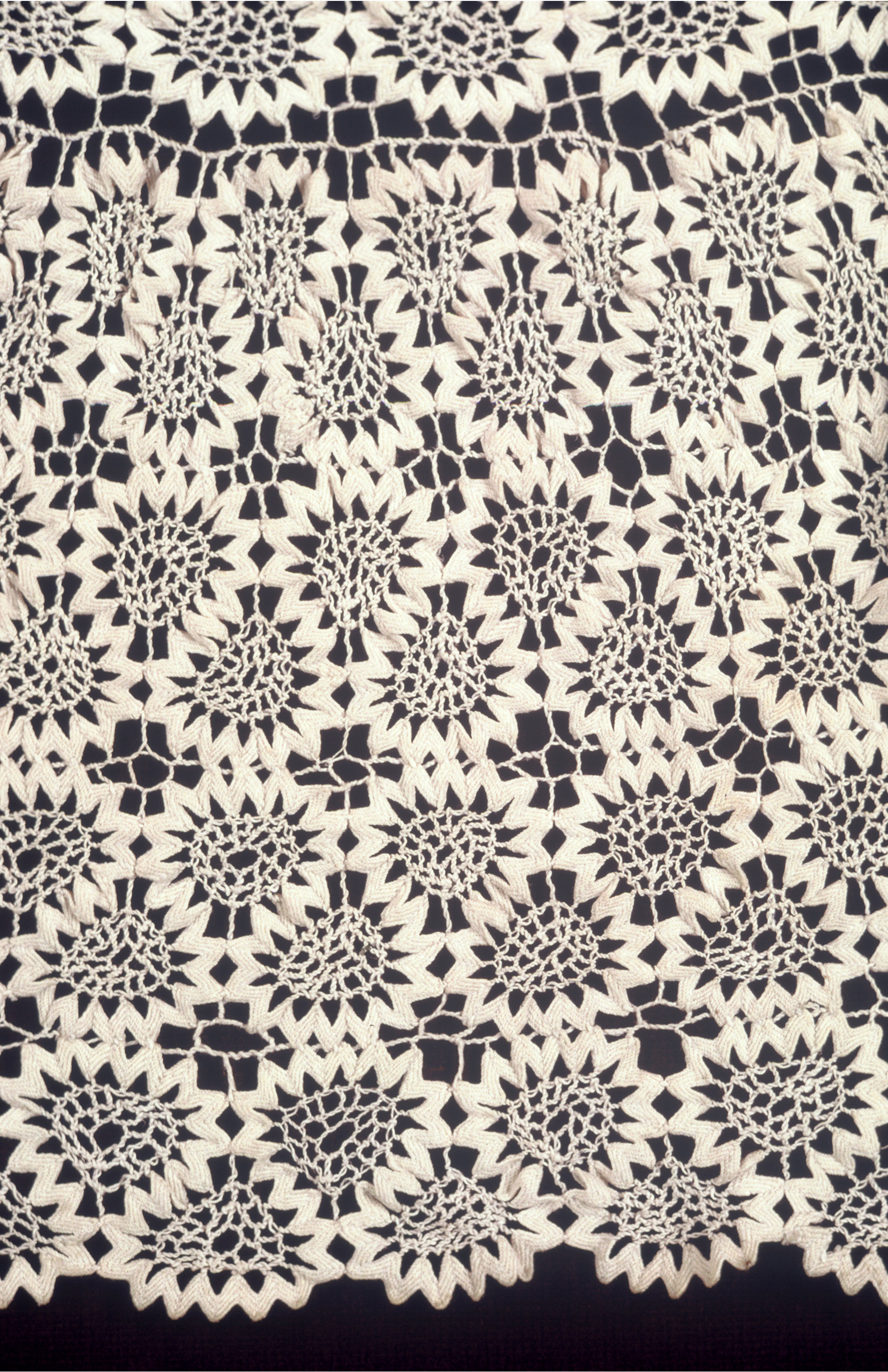 This is a Child's dress. It is dated early 19th century and we acquired it in 1965. Its medium is linen (?) and its technique is rick-rack used as tape with needle lace fillings. It is a part of the Textiles department.