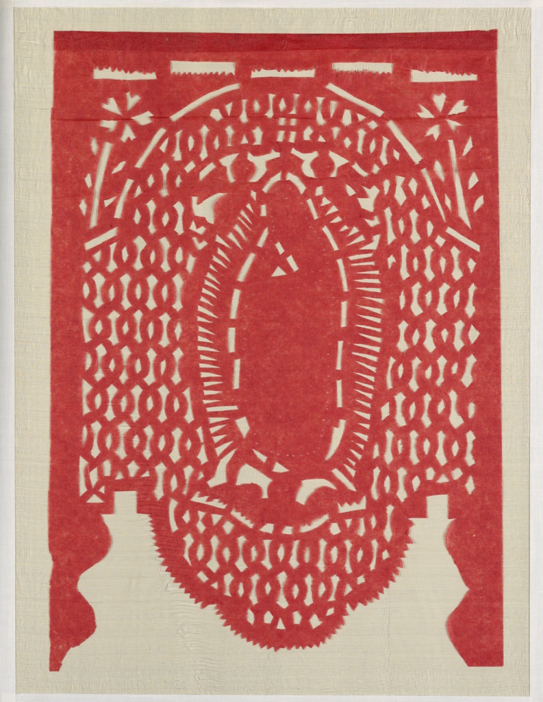 Cut Paper, Virgin of Guadaloupe; USA; cut paper; 35.2 × 24.8 cm (13 7/8 × 9 3/4 in.) Mat: 45.7 × 35.6 cm (18 × 14 in.); Gift of Edward L. Kallop Jr.; 1965-42-4