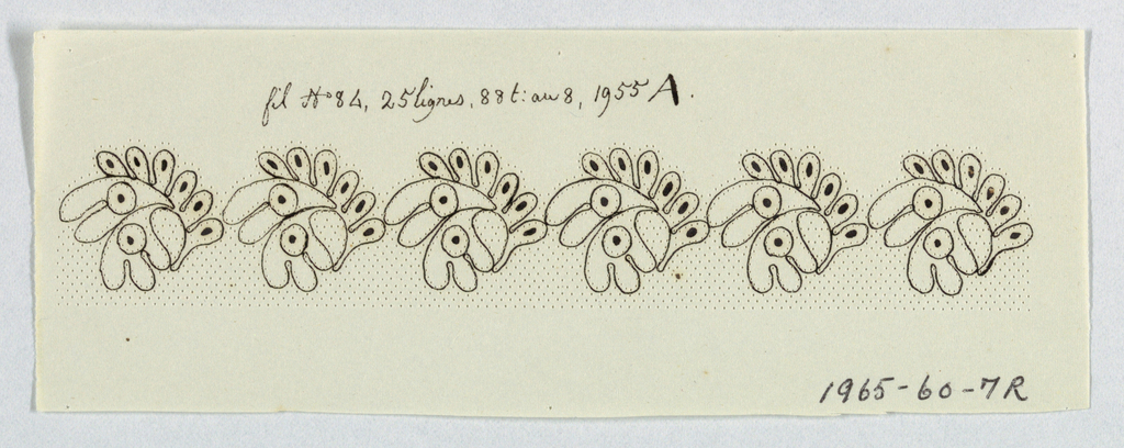 This is a pattern prickings. We acquired it in 1965. Its medium is paper, cardboard. It is a part of the Textiles department.