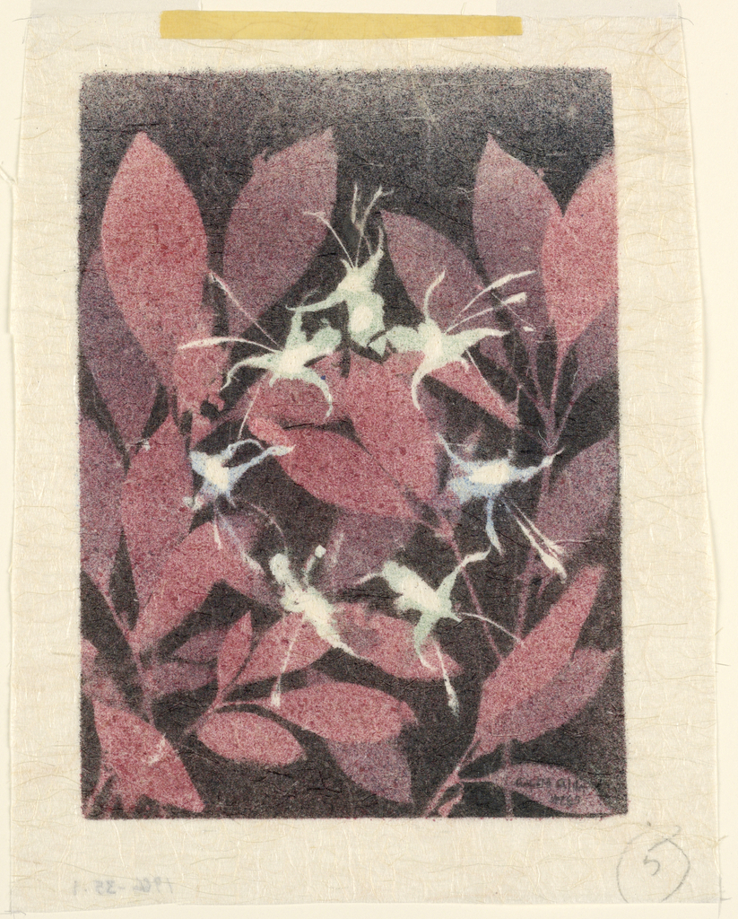Drawing, Leaves and Flowers; Mrs. Rodman Gilder; USA; spatter painting in colored inks on rice paper; H x W: 25.4 × 17.8 cm (10 × 7 in.); Gift of Mrs. Rodman Geller; 1966-35-1