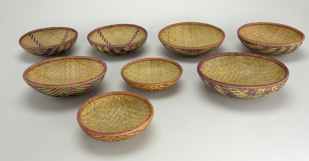 Cover; straw; a: 6 x 17 cm (2 3/8 x 6 11/16 in.) b: 5 x 18 cm (1 15/16 x 7 1/16 in.) c: 7.5 x 22.4 cm (2 15/16 x 8 13/16 in.) d: 6.5 x 23.3 cm (2 9/16 x 9 3/16 in.) e: 7 x 23.5 cm (2 3/4 x 9 1/4 in.) f: 6.5 x 24 cm (2 9/16 x 9 7/16 in.) g: 7.5 x 23.7 cm (2 15/16 x 9 5/16 in.) h: 8 x 24.5 cm (3 1/8 x 9 5/8 in.); 1966-82-5-a/h