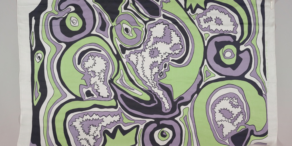 This is a Textile. It was designed by Tzaims Luksus. It is dated 1964–66 and we acquired it in 1966. Its medium is silk and its technique is screen printed. It is a part of the Textiles department.
