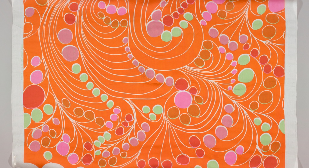 This is a Textile. It was designed by Tzaims Luksus. It is dated 1964–66 and we acquired it in 1966. Its medium is silk and its technique is screen printed on plain weave. It is a part of the Textiles department.