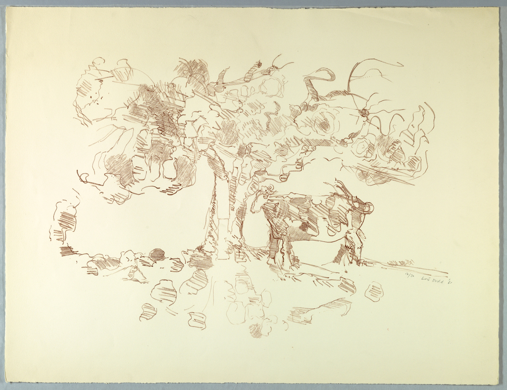 Print, Cow; Lois Dodd, American, b. 1927; USA; lithograph on paper; 66.5 × 50.7 cm (26 3/16 × 19 15/16 in.); Gift of Lois Dodd; 1967-13-25