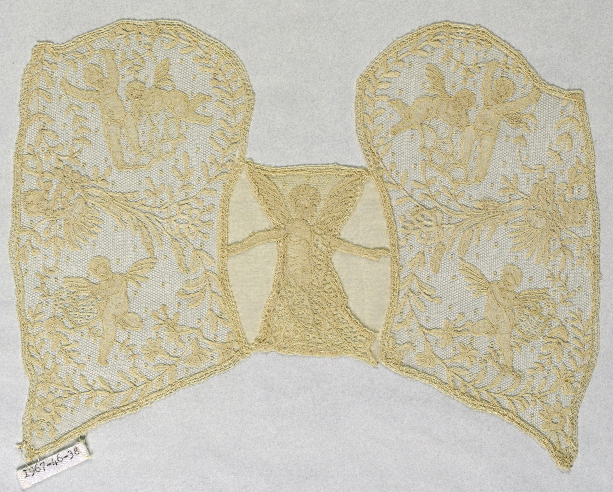 This is a Cap. It is dated late 18th century and we acquired it in 1967. Its medium is linen and its technique is bobbin lace applique on needle lace ground (applied lace). It is a part of the Textiles department.