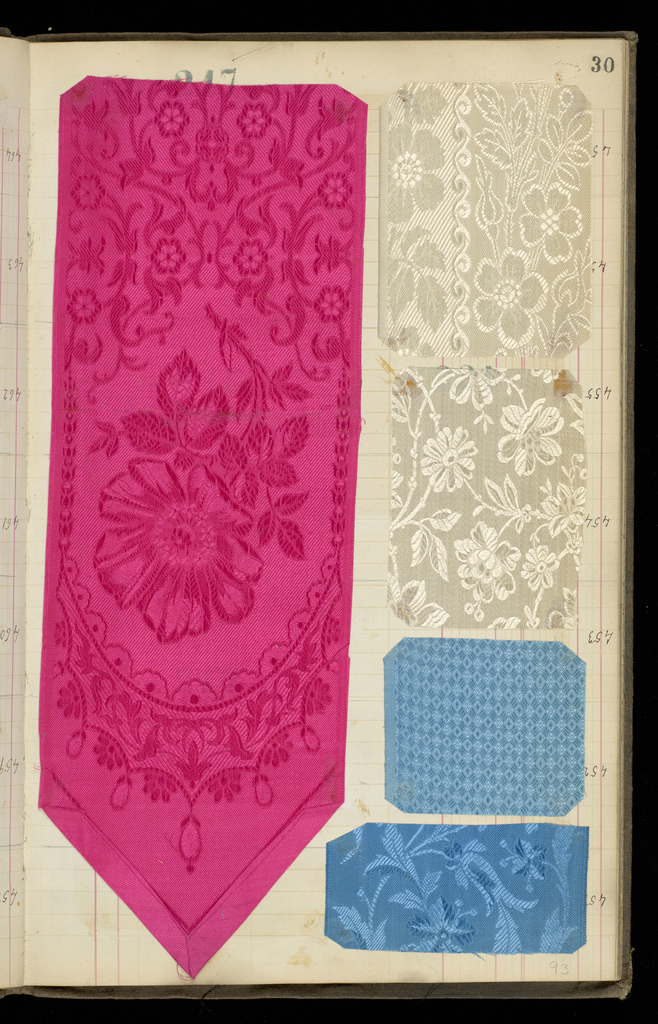 This is a Scrapbook. It is dated ca. 1900 and we acquired it in 1967. Its medium is silk and its technique is various weave structures. It is a part of the Textiles department.