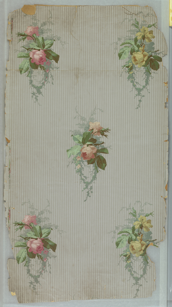 Sidewall - Floral; block-printed; 21 x 50 cm (8 1/4 x 19 11/16 in.); Gift of Harvey Smith; 1968-111-108