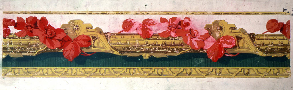 This is a Border. It was created by Ericson & Weiss. It is dated 1900–1920 and we acquired it in 1968. Its medium is block printed on paper. It is a part of the Wallcoverings department.