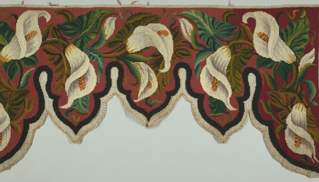 This is a Valance. It is dated late 19th century and we acquired it in 1968. Its medium is wool, cotton. It is a part of the Textiles department.
