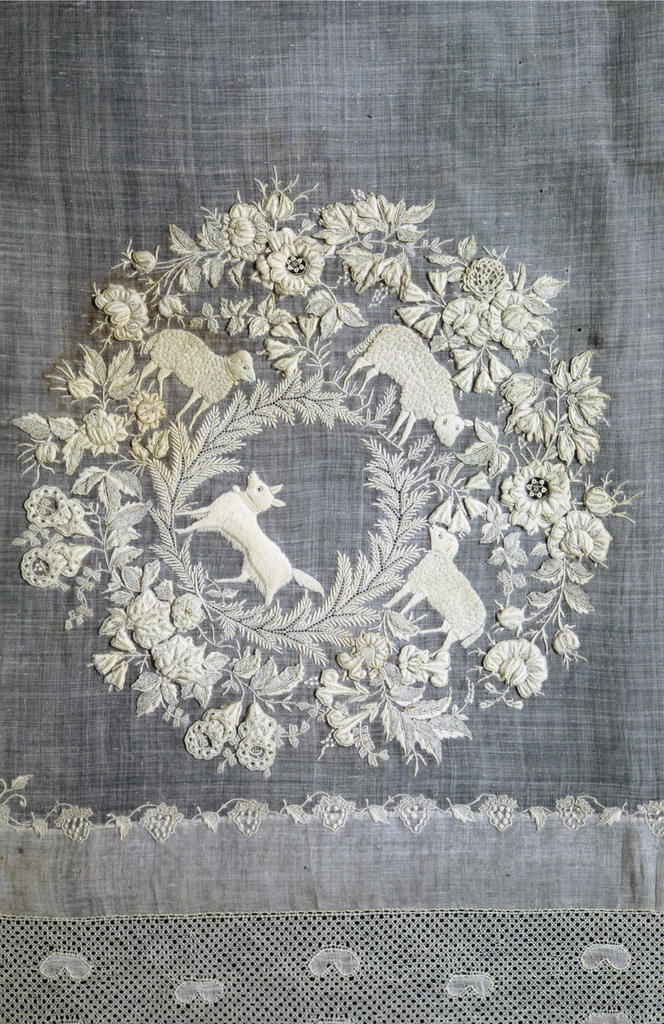 This is a Handkerchief. It is dated 19th century and we acquired it in 1969. Its medium is linen. It is a part of the Textiles department.