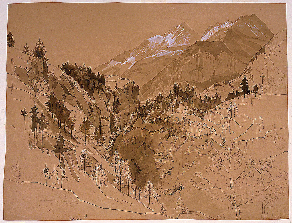 Drawing, Study of landscape, Meiringen, Switzerland; William Stanley Haseltine (1835 – 1900); Switzerland; brush and wash, gouache, graphite on wove paper ; 44.7 x 57.7 cm (17 5/8 x 22 11/16 in.) ; Gift of Mrs. Roger H. Plowden; 1969-121-50