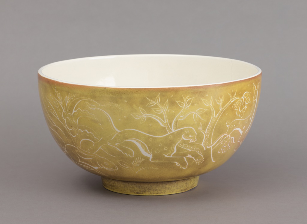This is a punch bowl. It was made by Don Schreckengost. It is dated 1941 and we acquired it in 1969. Its medium is stoneware. It is a part of the Product Design and Decorative Arts department.