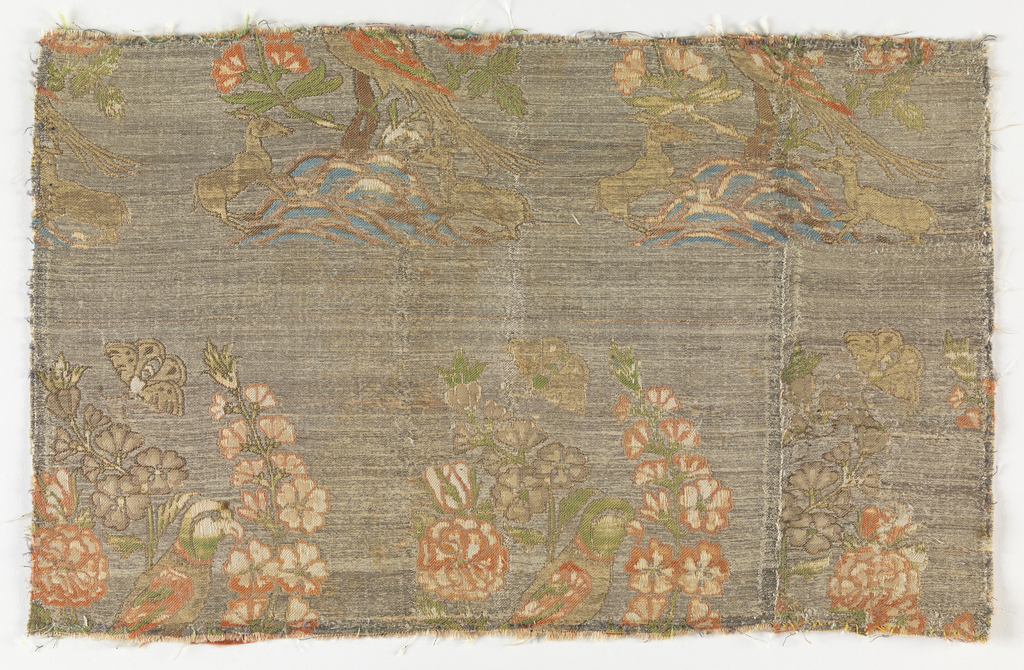 This is a Textile. It is dated 18th–early 19th century and we acquired it in 1970. Its medium is silk and its technique is plain weave with discontinuous supplementary weft patterning (brocade). It is a part of the Textiles department.