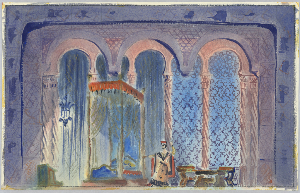 Drawing, Stage Design: Othello; Written by William Shakespeare (British, ca. 1564–1616); USA; brush and watercolor on paper; H x W: 33 × 52.2 cm (13 in. × 20 9/16 in.); Gift of Jay Keene; 1970-51-10