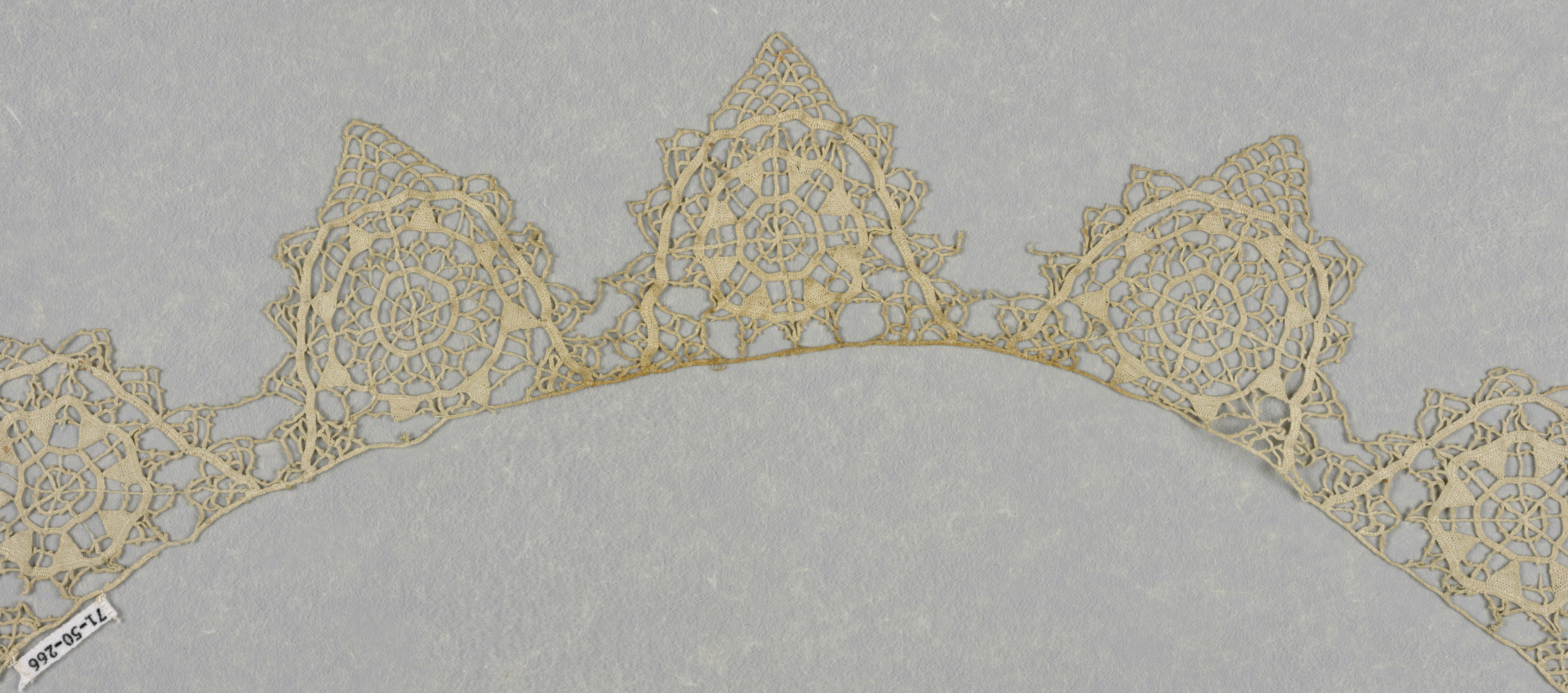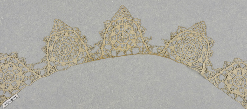 This is a Border. It is dated 16th–17th century and we acquired it in 1971. Its medium is linen and its technique is needle lace (reticella). It is a part of the Textiles department.
