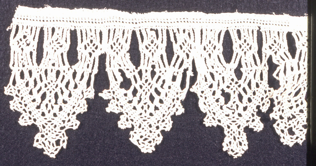This is a Border fragment. It is dated 17th century and we acquired it in 1971. Its medium is linen and its technique is knotting (macramé). It is a part of the Textiles department.