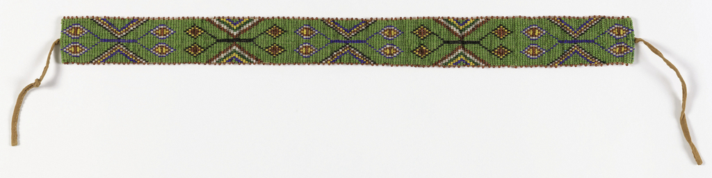 This is a Band. It is dated 20th century and we acquired it in 1971. Its technique is framed beadwork. It is a part of the Textiles department.