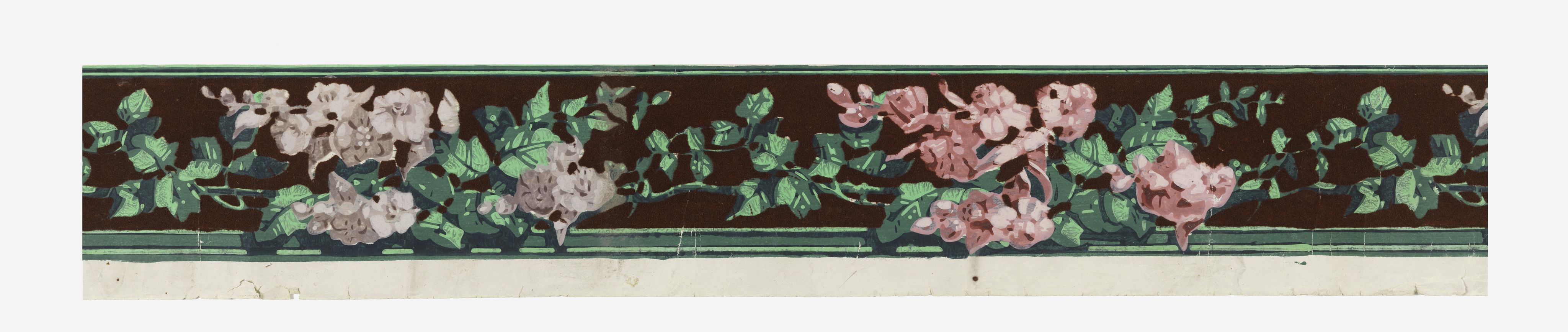 This is a Border. It is dated 1850–75 and we acquired it in 1972. Its medium is block-printed on machine-made paper. It is a part of the Wallcoverings department.