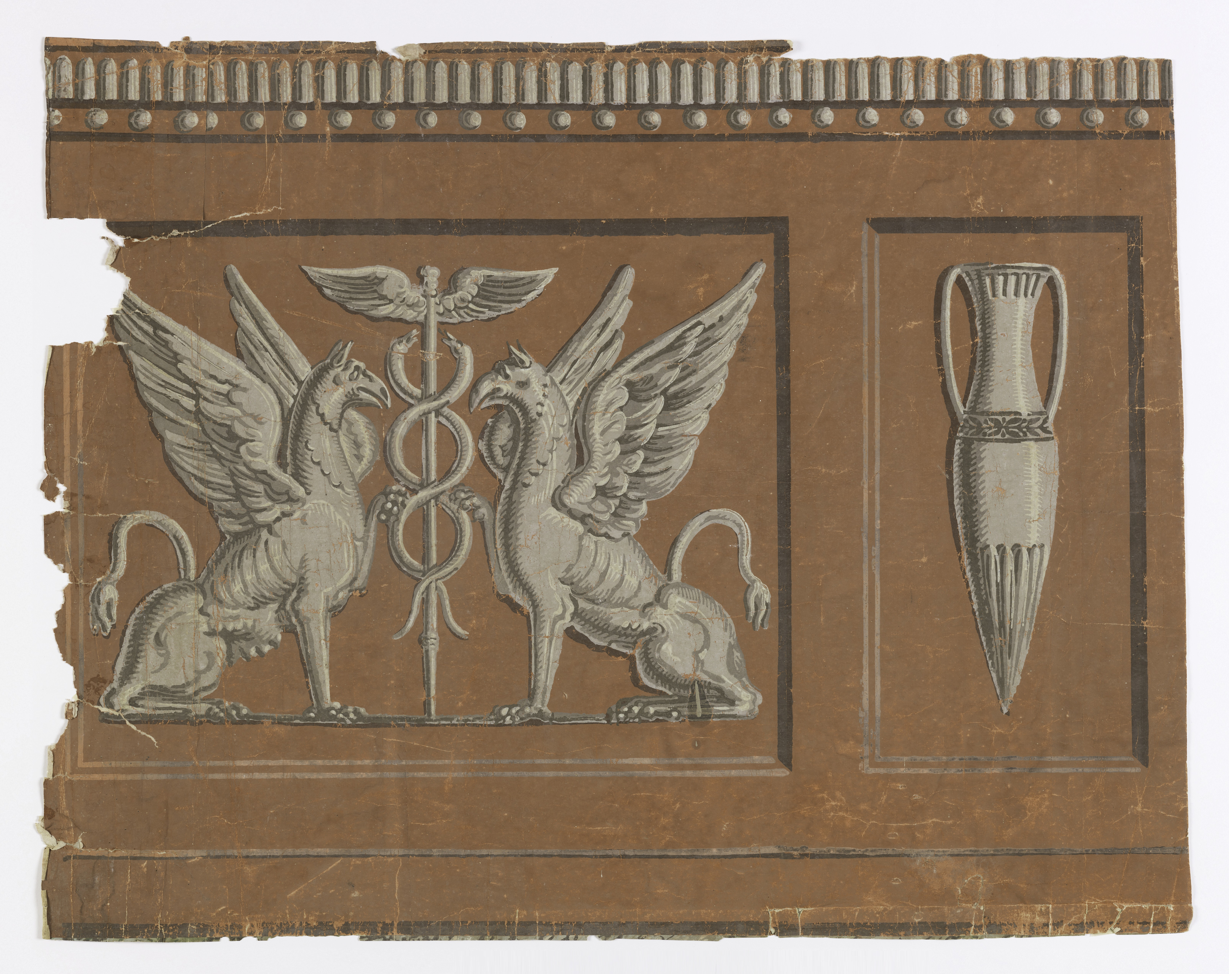 This is a Dado. It is dated 1800–1840 and we acquired it in 1972. Its medium is block-printed on handmade paper. It is a part of the Wallcoverings department.