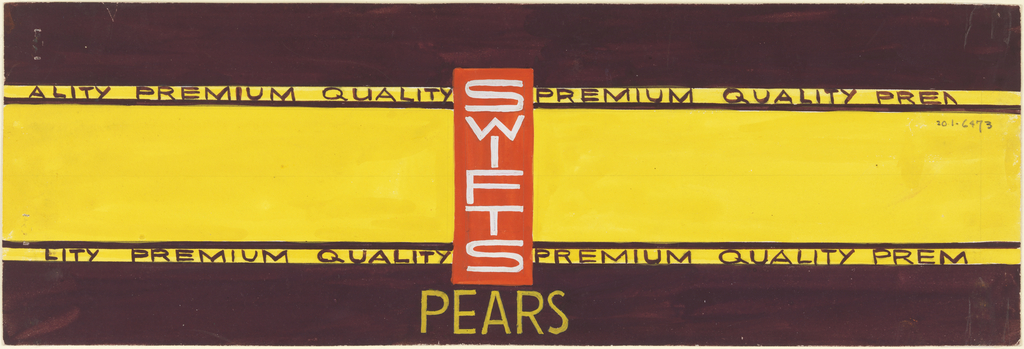 Drawing, Product Label for Pears, Swift and Co.; Designed by Henry Dreyfuss (American, 1904–1972); USA; brush and gouache, graphite on heavy paper; 11 x 33 cm (4 5/16 in. x 13 in.); Gift of University of California, Los Angeles; 1973-15-84