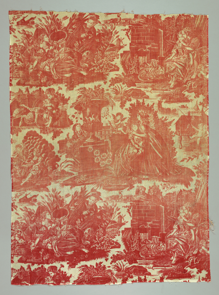 This is a Textile. It is dated late 18th century and we acquired it in 1973. Its medium is cotton and its technique is printed by engraved roller on plain weave. It is a part of the Textiles department.