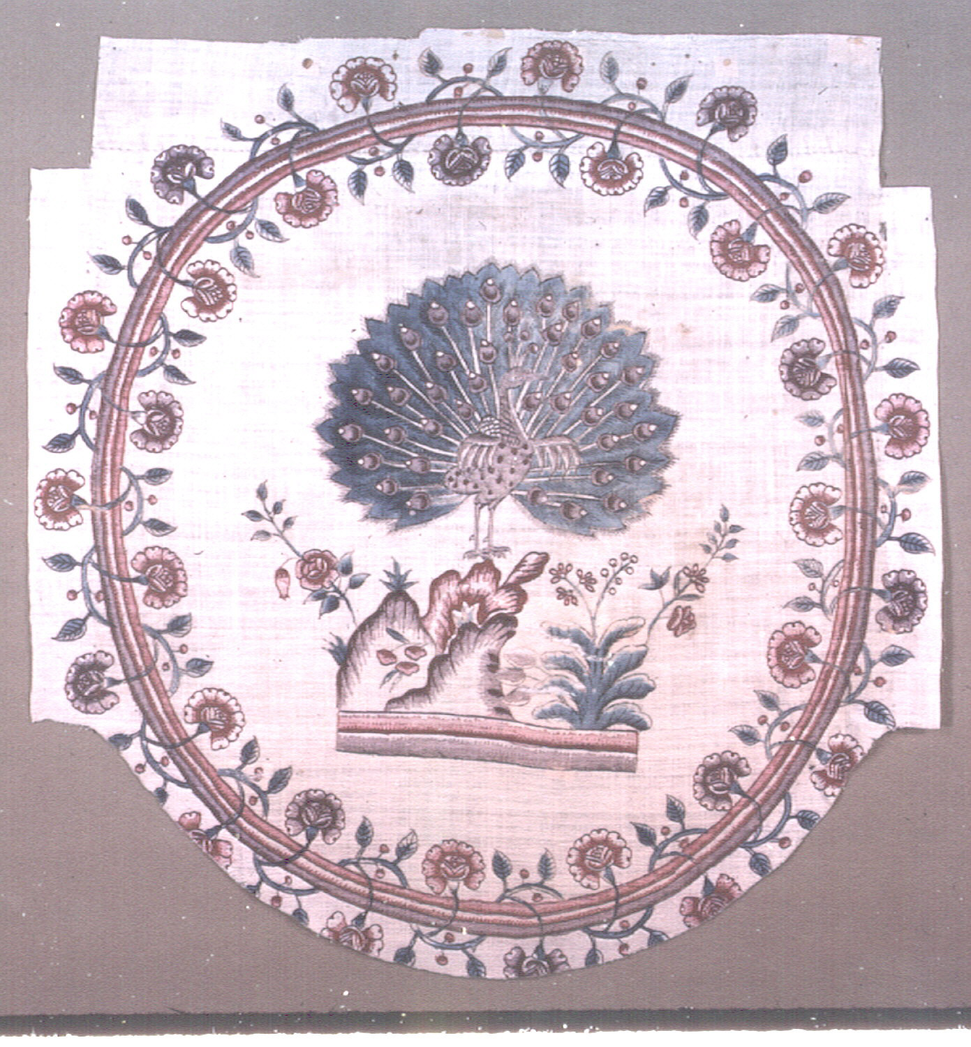 This is a Chintz fragment. It is dated 18th century and we acquired it in 1973. Its medium is cotton and its technique is mordant painted and dyed plain weave. It is a part of the Textiles department.