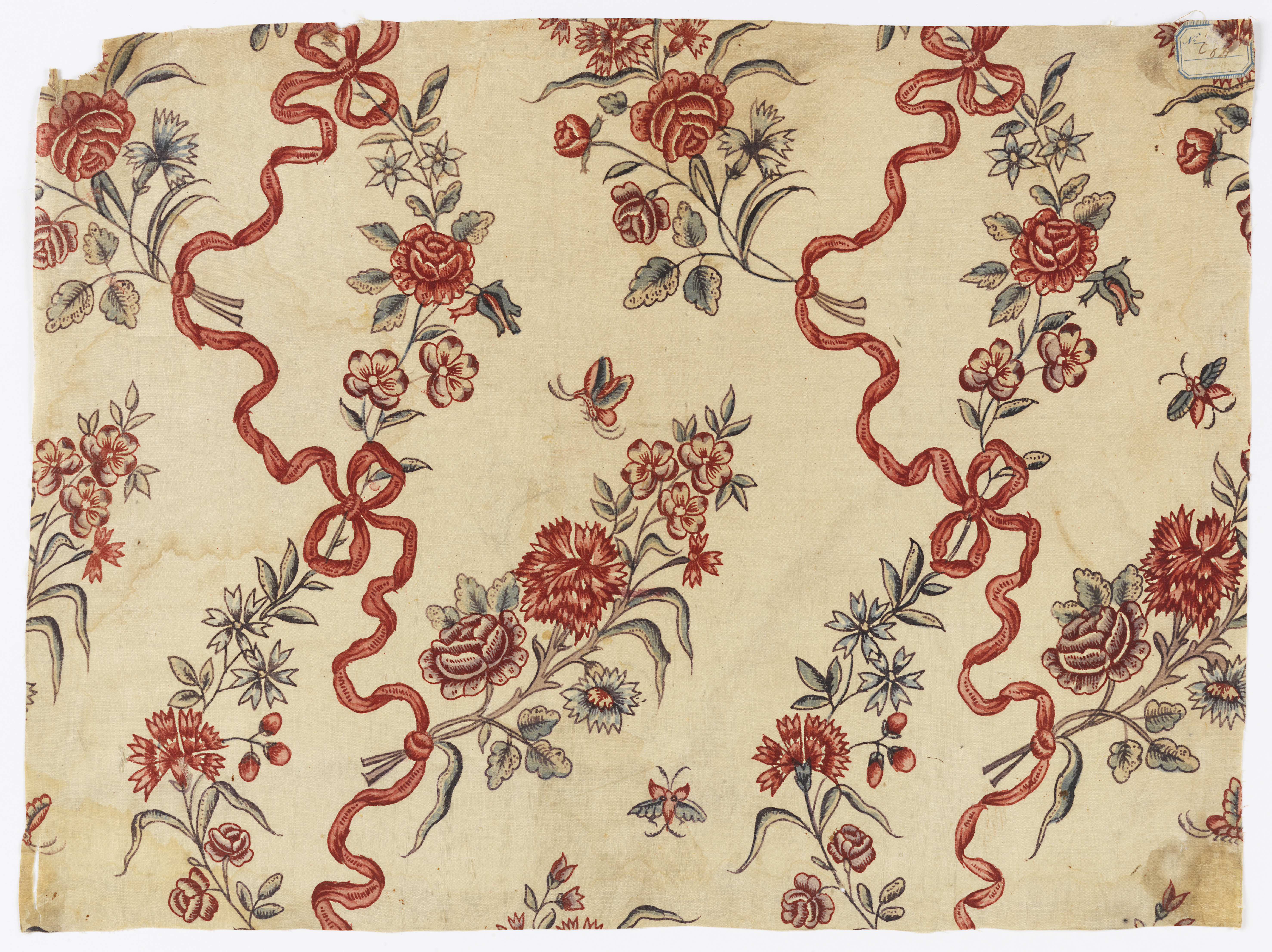This is a Textile. It is dated 1750–1800 and we acquired it in 1973. Its medium is cotton and its technique is mordants for 2 reds, purple and black applied by pen and brush; madder dyed; blue applied over resist; yellow applied over blue for green, (chintz) on plain weave. It is a part of the Textiles department.