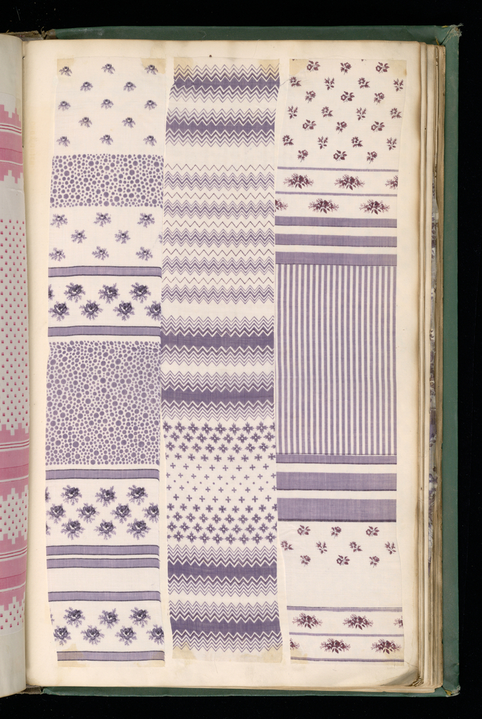 This is a Sample book. It is dated ca. 1857 and we acquired it in 1973. Its medium is cardboard, paper, cotton and its technique is printed. It is a part of the Textiles department.