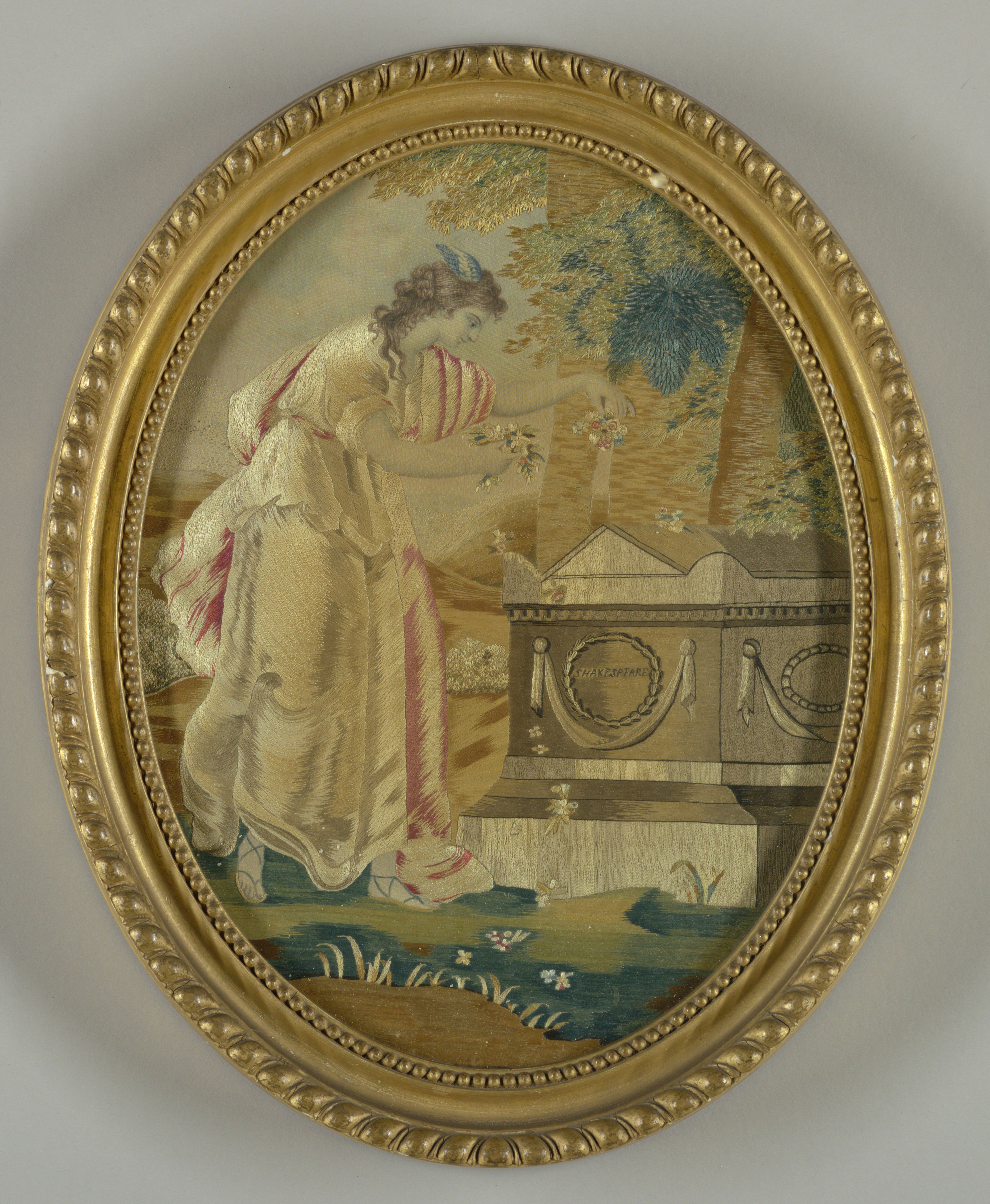 <ref name=CH>{{cite web |url=https://www-6.collection.cooperhewitt.org/objects/18482601/ |title=Embroidered Picture, Fame Adoring Shakespeare's Tomb |author=Cooper Hewitt, Smithsonian Design Museum |accessdate=19 December 2025 |publisher=Smithsonian Institution}}</ref>