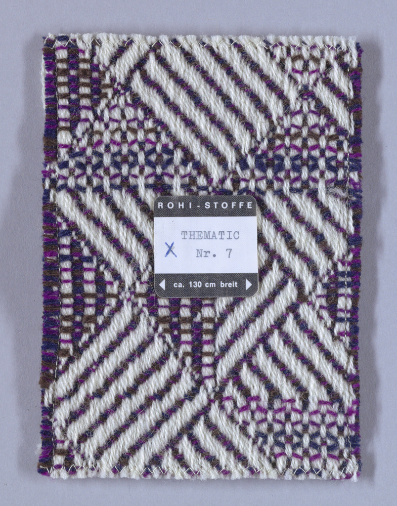 This is a Samples. It was manufactured by Rohi. It is dated 1973 and we acquired it in 1974. Its medium is wool and its technique is woven. It is a part of the Textiles department.
