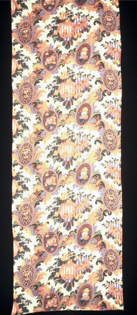 This is a Textile. It is dated mid-19th century and we acquired it in 1974. Its medium is cotton and its technique is printed by engraved roller on plain weave. It is a part of the Textiles department.