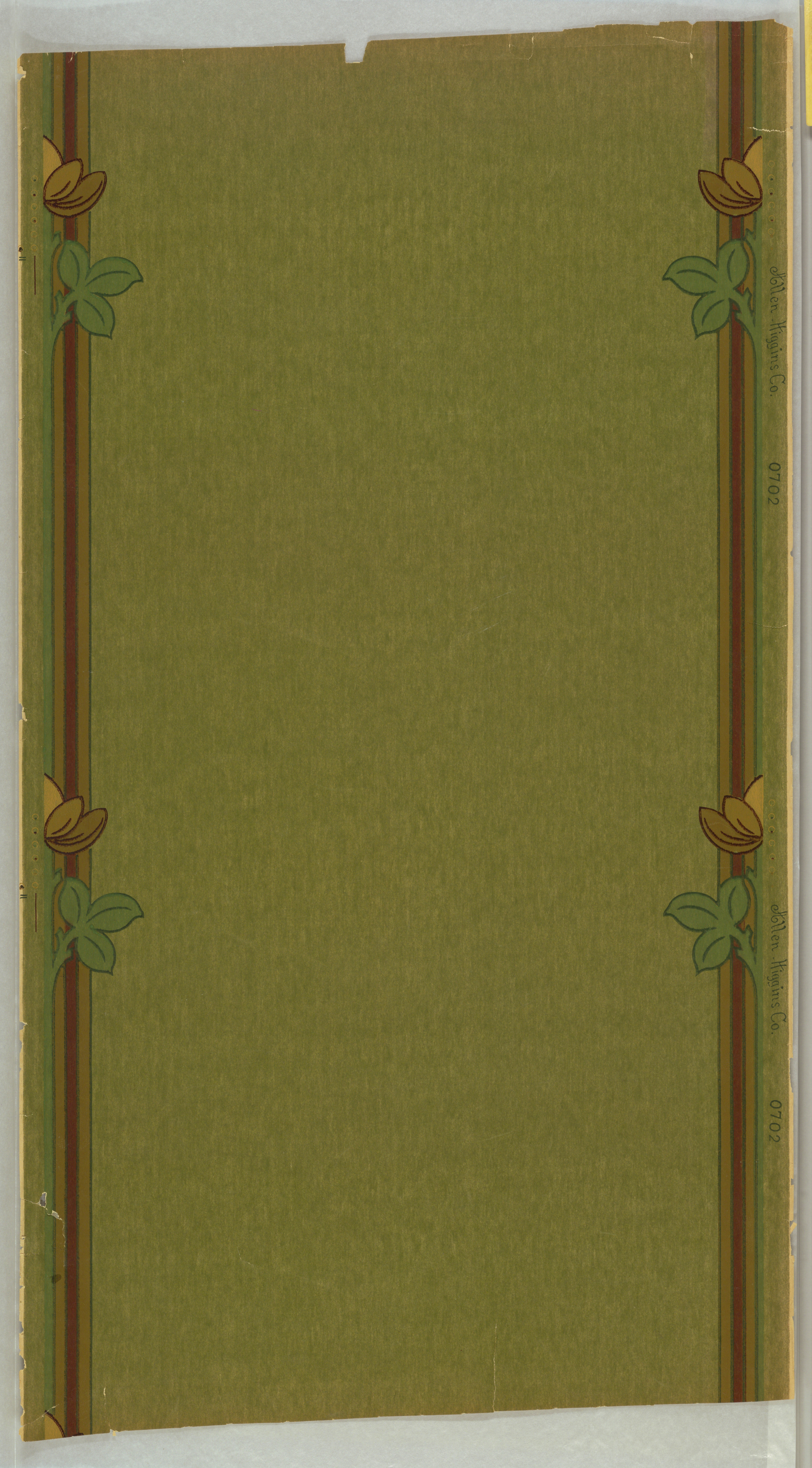 This is a Sidewall and frieze. It was manufactured by Allen-Higgins Co.. It is dated ca. 1900 and we acquired it in 1974. Its medium is machine-printed. It is a part of the Wallcoverings department.