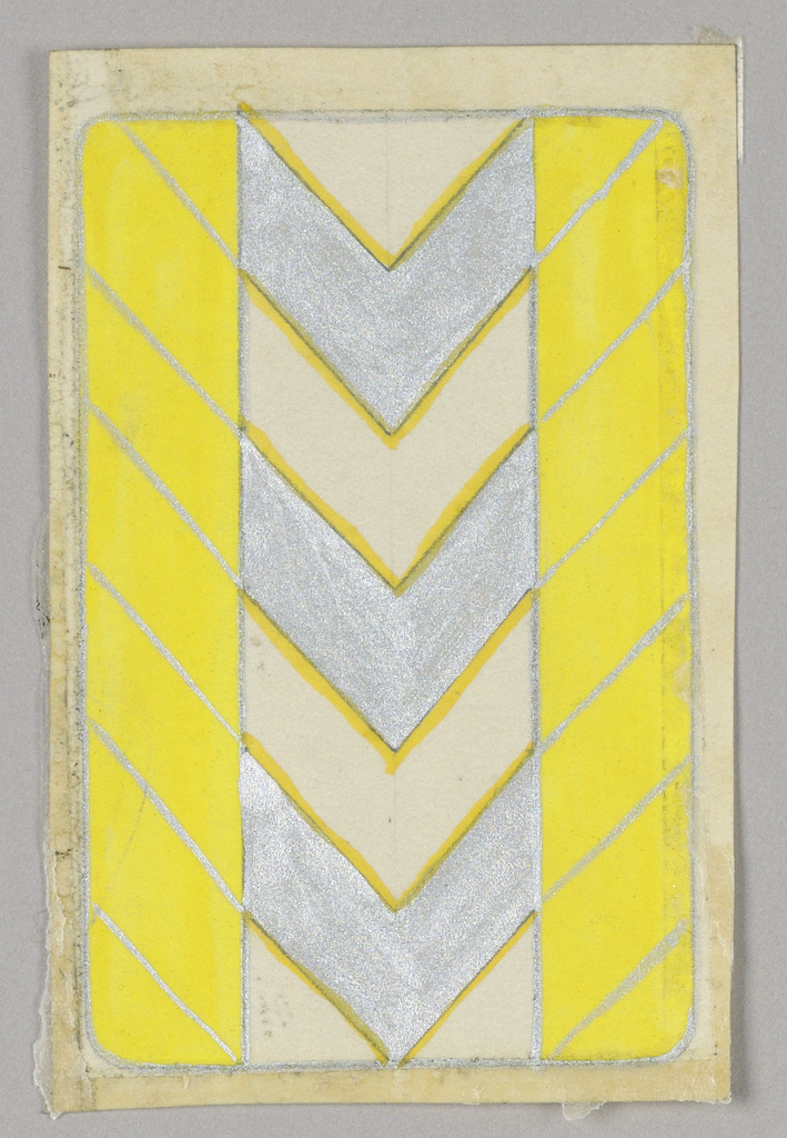 Drawing, Design for Playing Cards; Designed by Simon Lissim (American, b. Kiev, Russia, 1900–1981); USA; graphite, brush and red, yellow, silver gouache on white wove paper; 9.9 × 6.5 cm (3 7/8 × 2 9/16 in.); Gift of Simon Lissim; 1974-82-3-a