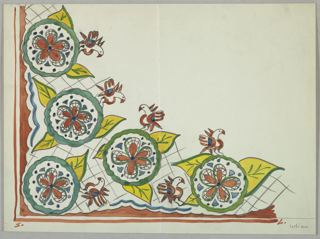 This is a Drawing. It was designed by Simon Lissim. We acquired it in 1974. Its medium is brush and gouache, graphite on heavy white paper. It is a part of the Drawings, Prints, and Graphic Design department.