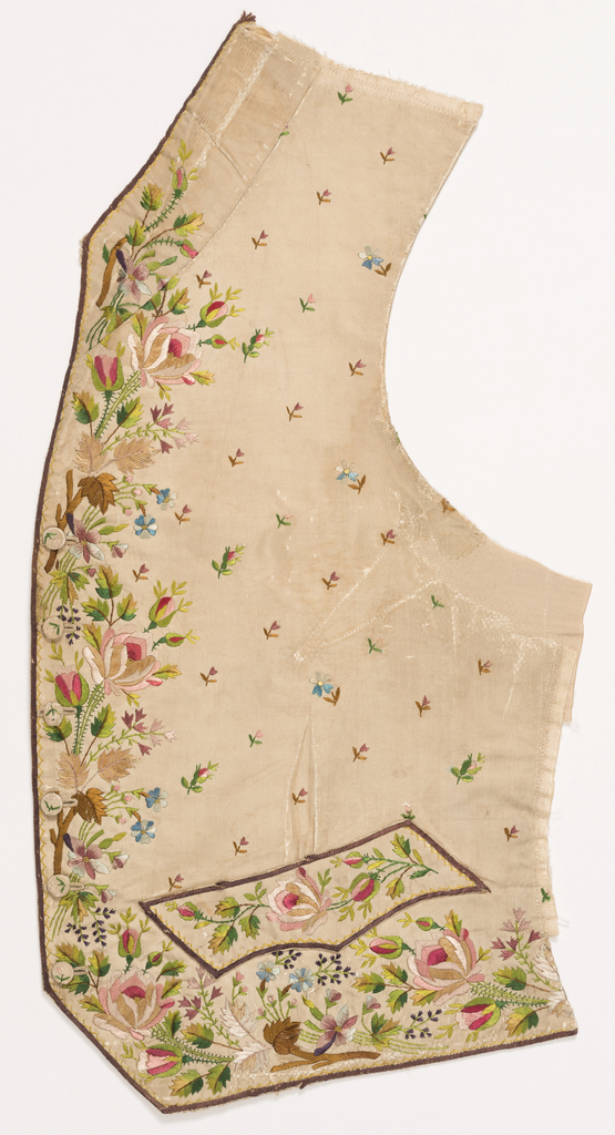 This is a Waistcoat panels. It is dated ca. 1780 and we acquired it in 1974. Its medium is silk. It is a part of the Textiles department.