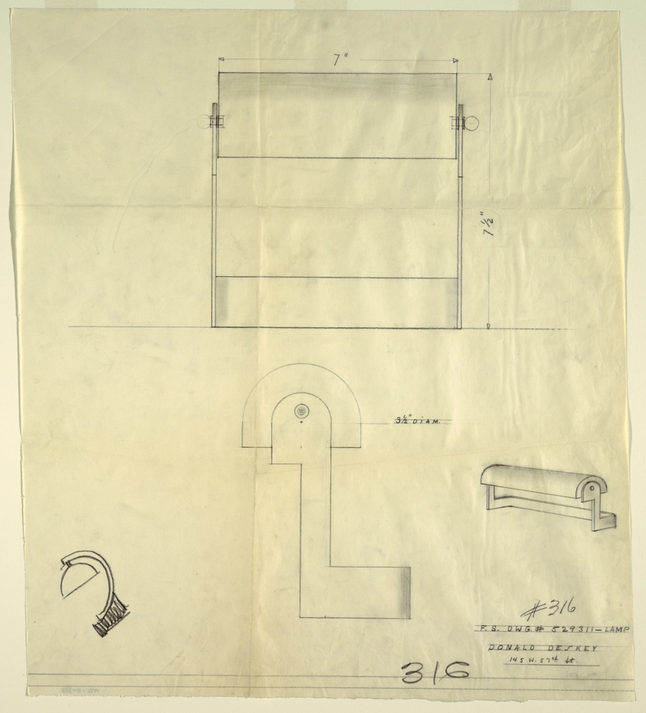 Inscribed in graphite, lower right: #316 / F.S. D W G.# 529311-LAMP / DONALD DESKEY / 145 W. 57th St.; in graphite, lower right: 316; in graphite: object dimensions