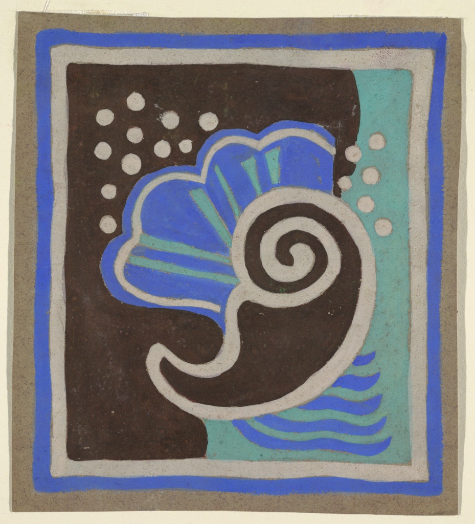 Drawing, Bathroom Mat Design with Sea Motif for Abby Aldrich Greene Rockefeller Apartment, 10 West 54th Street, New York, NY; Designed by Donald Deskey (American, 1894–1989); Client: Abby Greene Aldrich Rockefeller; USA; brush and gouache on gray wove paper; 23.4 x 20.9 cm (9 3/16 x 8 1/4 in.) Mat: 45.7 x 35.6 cm (18 x 14 in.); Gift of Donald Deskey; 1975-11-46