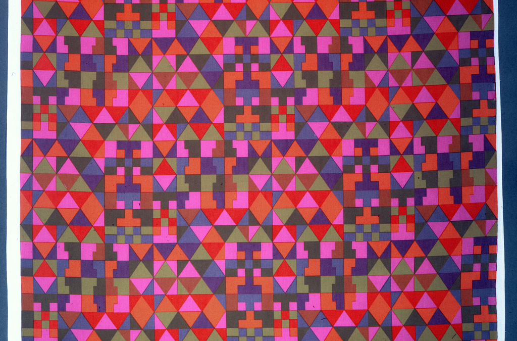 This is a Textile. It was manufactured by Boris Kroll Fabrics Inc.. It is dated 1970–79 and we acquired it in 1975. Its medium is cotton and its technique is screen printed on plain weave. It is a part of the Textiles department.